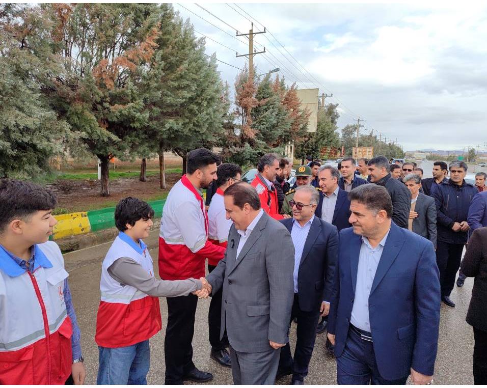 استقبال امدادگران و نجاتگران جمعیت هلال‌احمر دره‌شهر از استاندار ایلام در آیین غبارروبی مزار شهدای گمنام