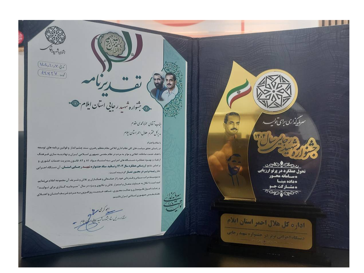 در این مراسم، جمعیت هلالاحمر استان ایلام بهعنوان دستگاه اجرایی برتر در محور نماز معرفی و از حمزه محمدیمقدم، مدیرعامل جمعیت استان، بهپاس تلاشها، برنامهریزی مؤثر و عملکرد شایسته در ترویج فرهنگ اقامه نماز و گسترش ارزشهای دینی و معنوی تقدیر بهعمل آمد.