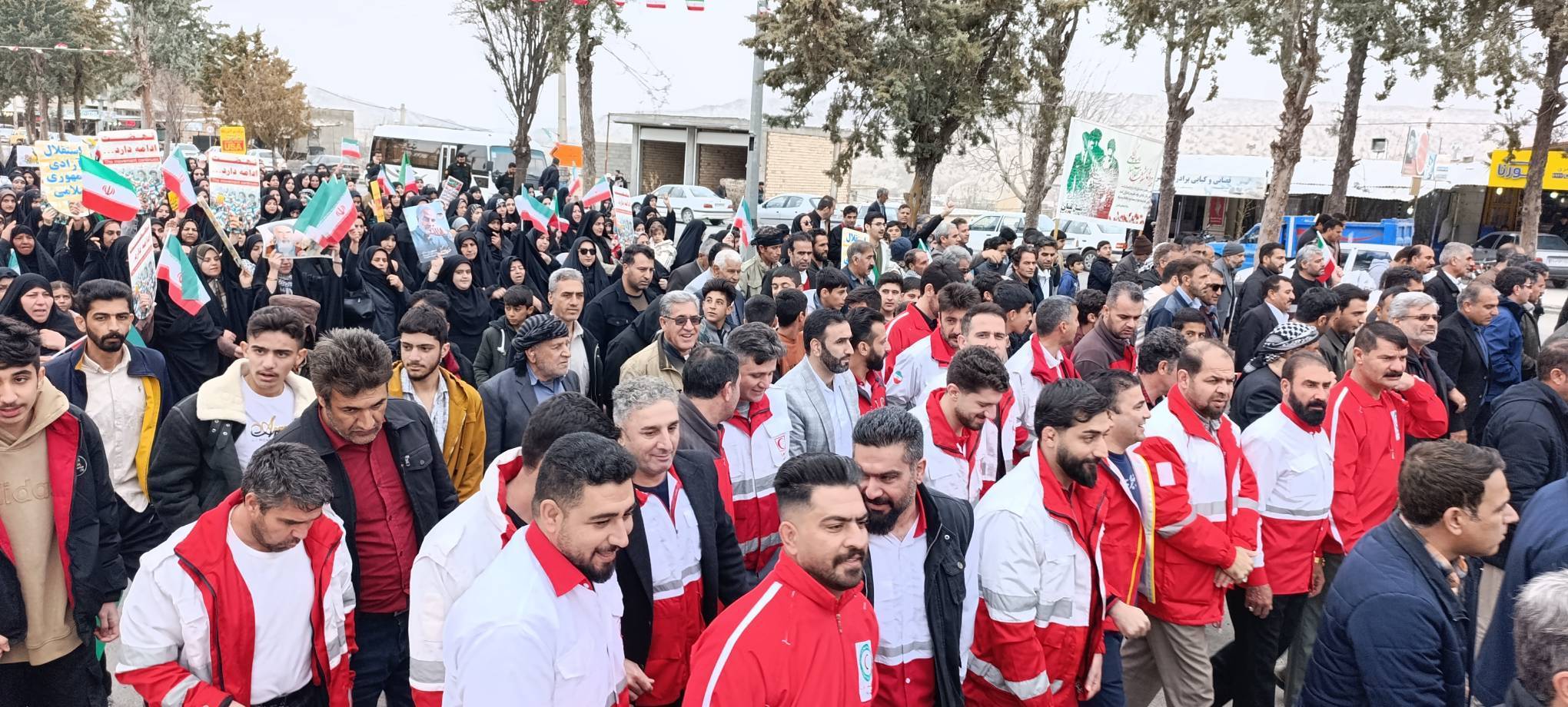 حضور گسترده امدادگران، نجاتگران، جوانان و داوطلبان و پرسنل جمعیت هلال‌احمر ایلام در راهپیمایی یوم‌الله ۲۲ بهمن در سراسر استان